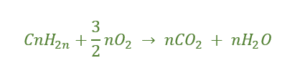 Ecris l’équation-bilan de la réaction de combustion d’un alcène.