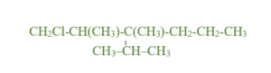 Ecris la formule semi-développée du 1-chloro-3-isopropyl-2,3-diméthylhexane.