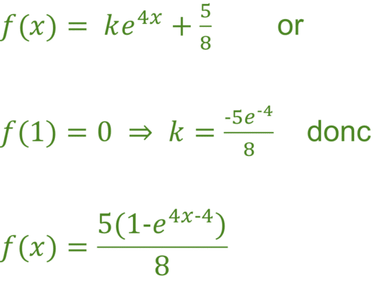 Trouver la solution de l’équation différentielle 2y’=8y-5 qui s’annule en 1.