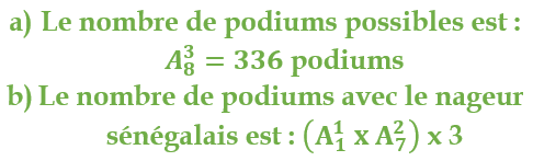 b- Détermine le nombre de podiums possibles avec le nageur sénégalais.