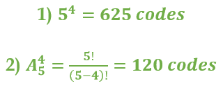1) Quel est le nombre de codes d’un antivol à 4 chiffres choisis entre 1 et 5 ?