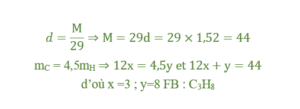 Un hydrocarbure gazeux a une densité d = 1,52. De plus il renferme en masse 4,5 fois plus de carbone que d’hydrogène. Trouve sa formule brute.