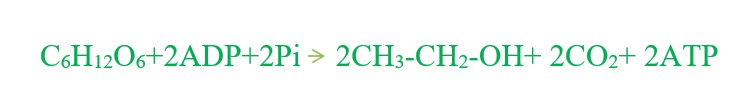 Sachant que la fermentation débute dans le l’hyaloplasme par la glycolyse. Ecrivez l’équation équilibrée de la formation d’éthanol (on donne la formule d’éthanol : CH3-CH2-OH).
