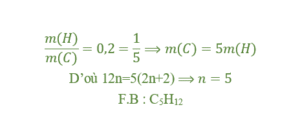 La microanalyse d’un alcane montre que le rapport entre la masse d’hydrogène et carbone qu’il renferme vaut 0,2. Détermine la formule brute de l’alcane.