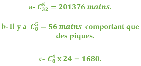 b- Combien de mains ne comportant que des piques existe -t-il ?
