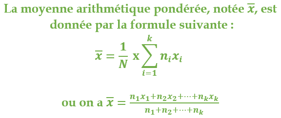 Donnez la définition de la Moyenne arithmétique pondérée.