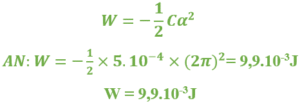 On dispose d’un réveil dont le ressort moteur est un ressort spiral de constante de raideur C = 5,0.10-4Nm/rad. Calcule le travail effectué par le ressort lorsqu’on remonte le réveil d’un tour.