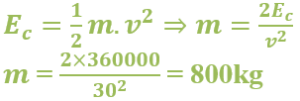L’énergie cinétique d’un véhicule roulant à la vitesse de 30m/s est Ec = 360000J. Calculez la masse du véhicule.