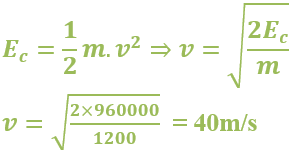 Calculez la vitesse d’un véhicule de masse 1200kg si son énergie cinétique Ec = 960k5.