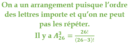 Quel est le nombre de mots de 3 lettres différentes que l’on peut former avec les 26 lettres de l’alphabet ?
