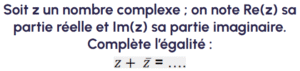 Soit z un nombre complexe ; on note Re(z) sa partie réelle et Im(z) sa partie imaginaire.